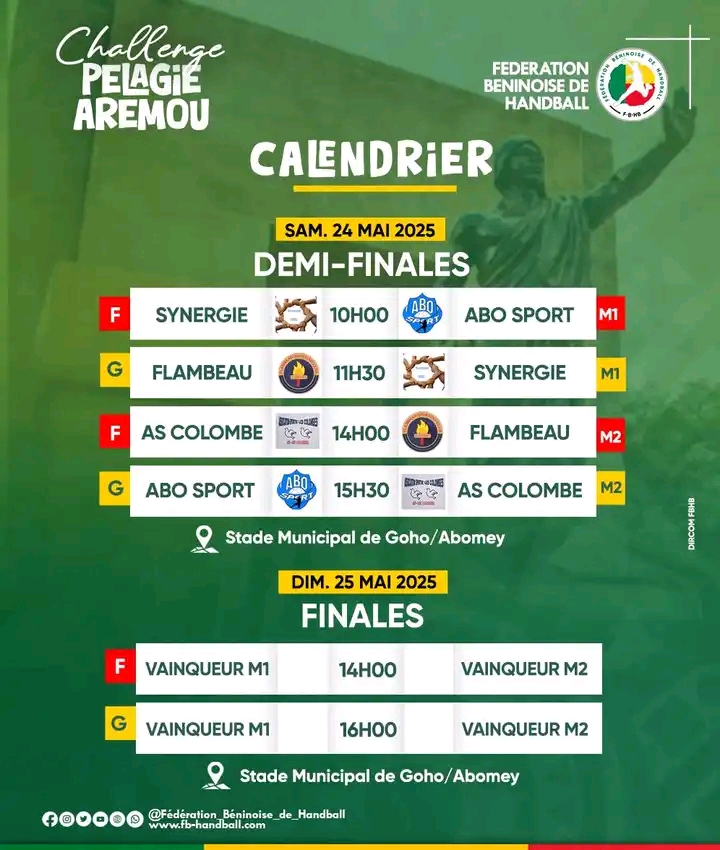 Sous l’égide de la Fédération Béninoise de Handball, ce tournoi regroupera huit équipes, réparties en deux catégories : quatre équipes féminines et quatre équipes masculines. Chez les filles, les clubs Synergie, Abo sport, AS Colombes et Flambeau SC croiseront les bras pour succéder au prestigieux trophée. Du côté des garçons, les jeunes de Flambeau, Synergie, AS Colombes et Abo Sport seront également en lice pour un tournoi qui s’annonce intense et formateur.