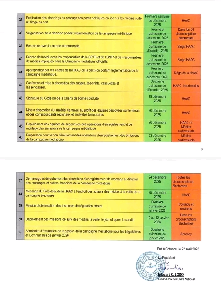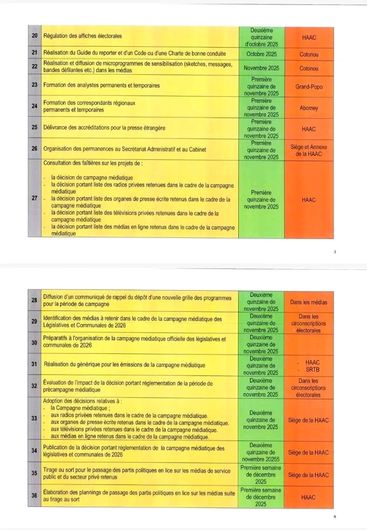 Ci-dessous le chronogramme des différentes activités de la Haac 👇