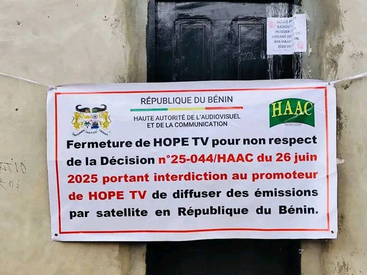 La Haute autorité de l’audiovisuel et de la communication (HAAC), 7ᵉ mandature, est passée à l’action pour mettre fin à des activités illégales persistantes dans le paysage médiatique béninois. Ce jeudi 14 août 2025, une délégation de l’institution, accompagnée d’un huissier de justice assermenté et d’agents de la Police républicaine, a procédé à la mise sous scellés des équipements de deux chaînes de télévision pirates émettant par satellite à savoir HOPE TV et NOE TV.